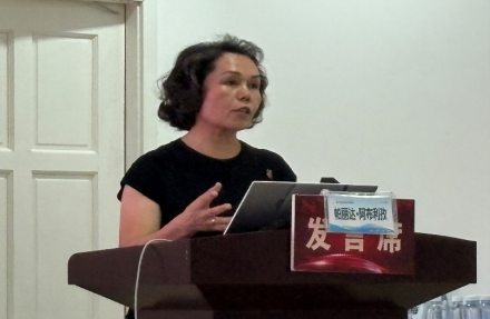图为:新疆医科大学第一附属医院帕丽达·阿布利孜教授作报告